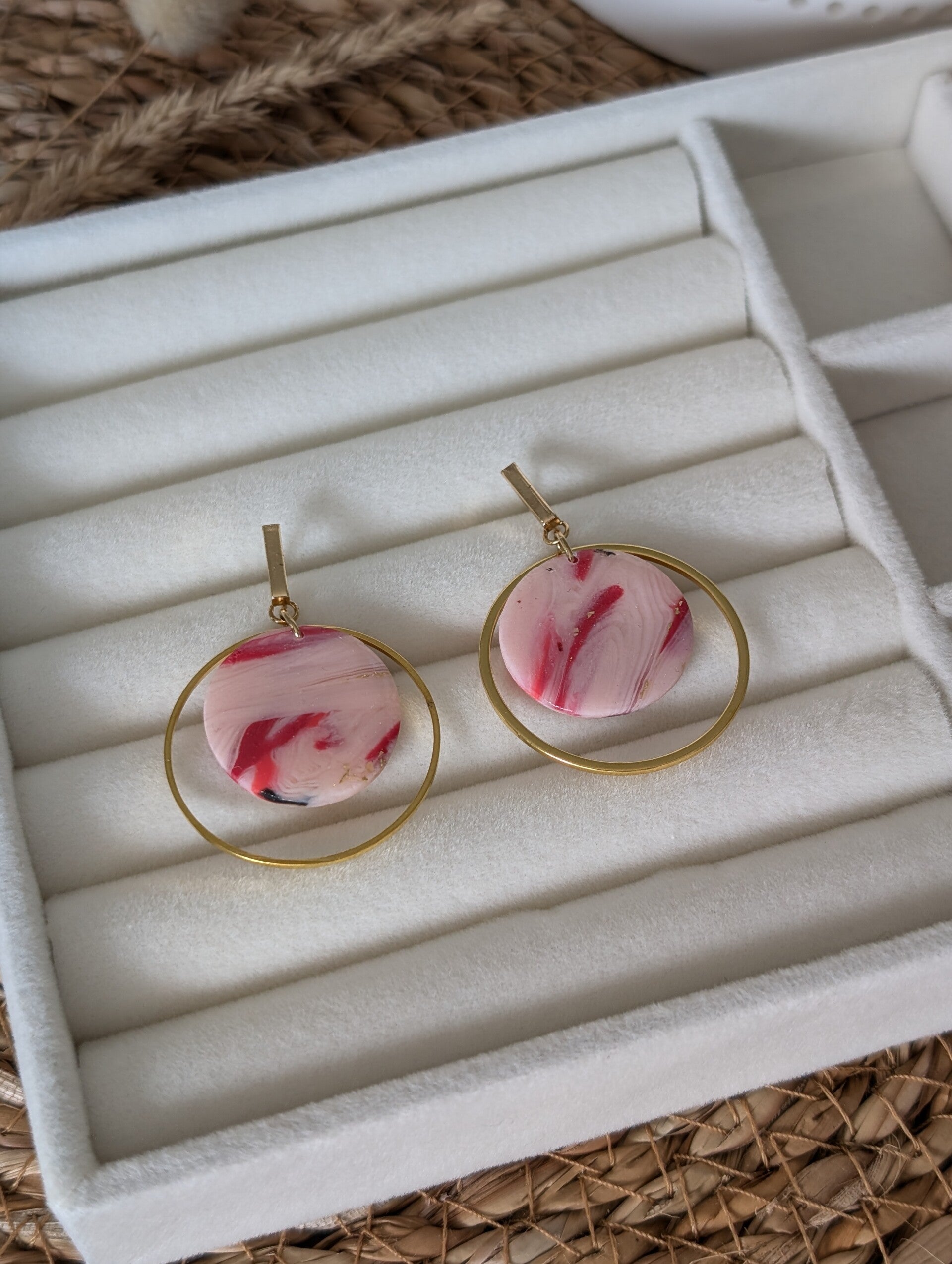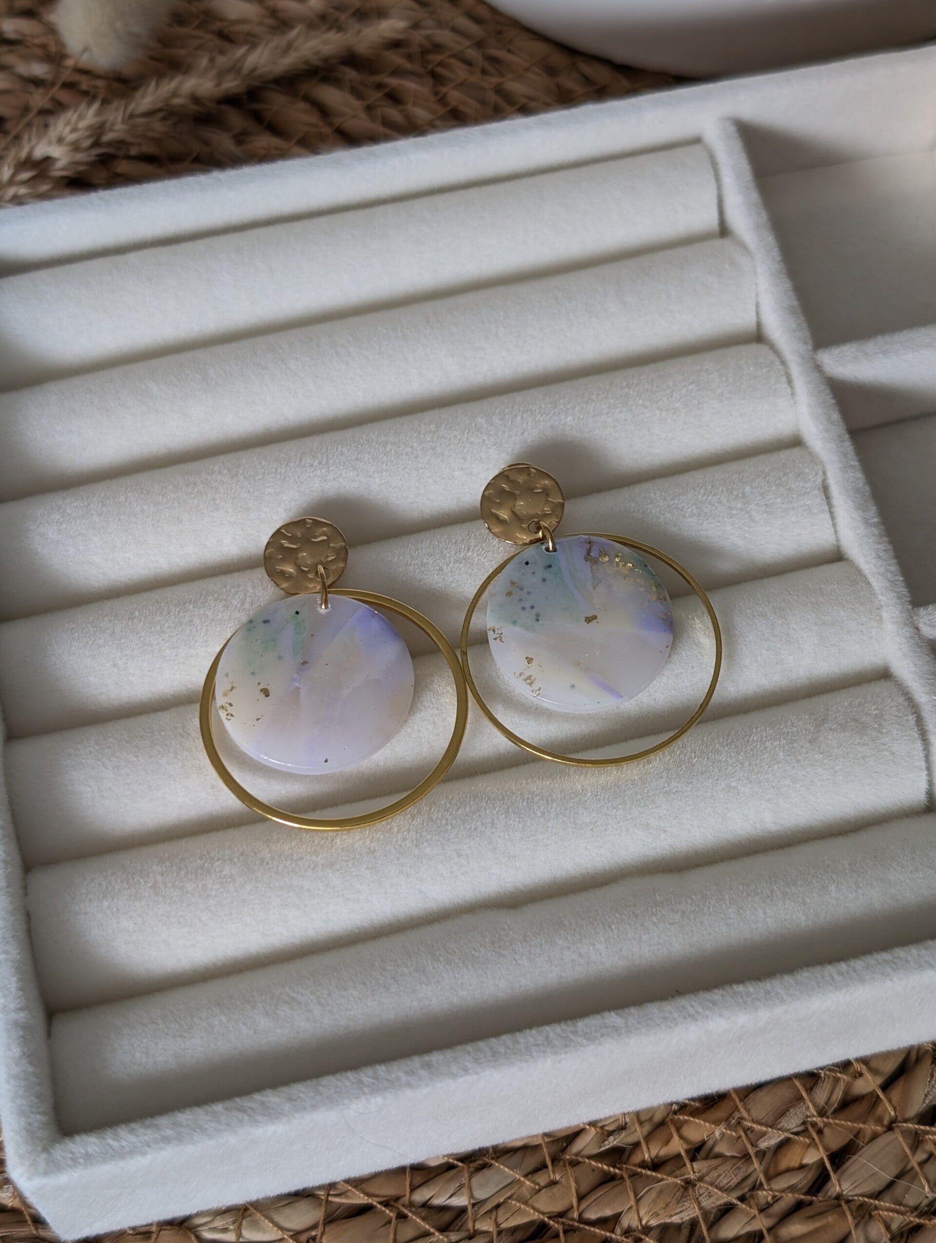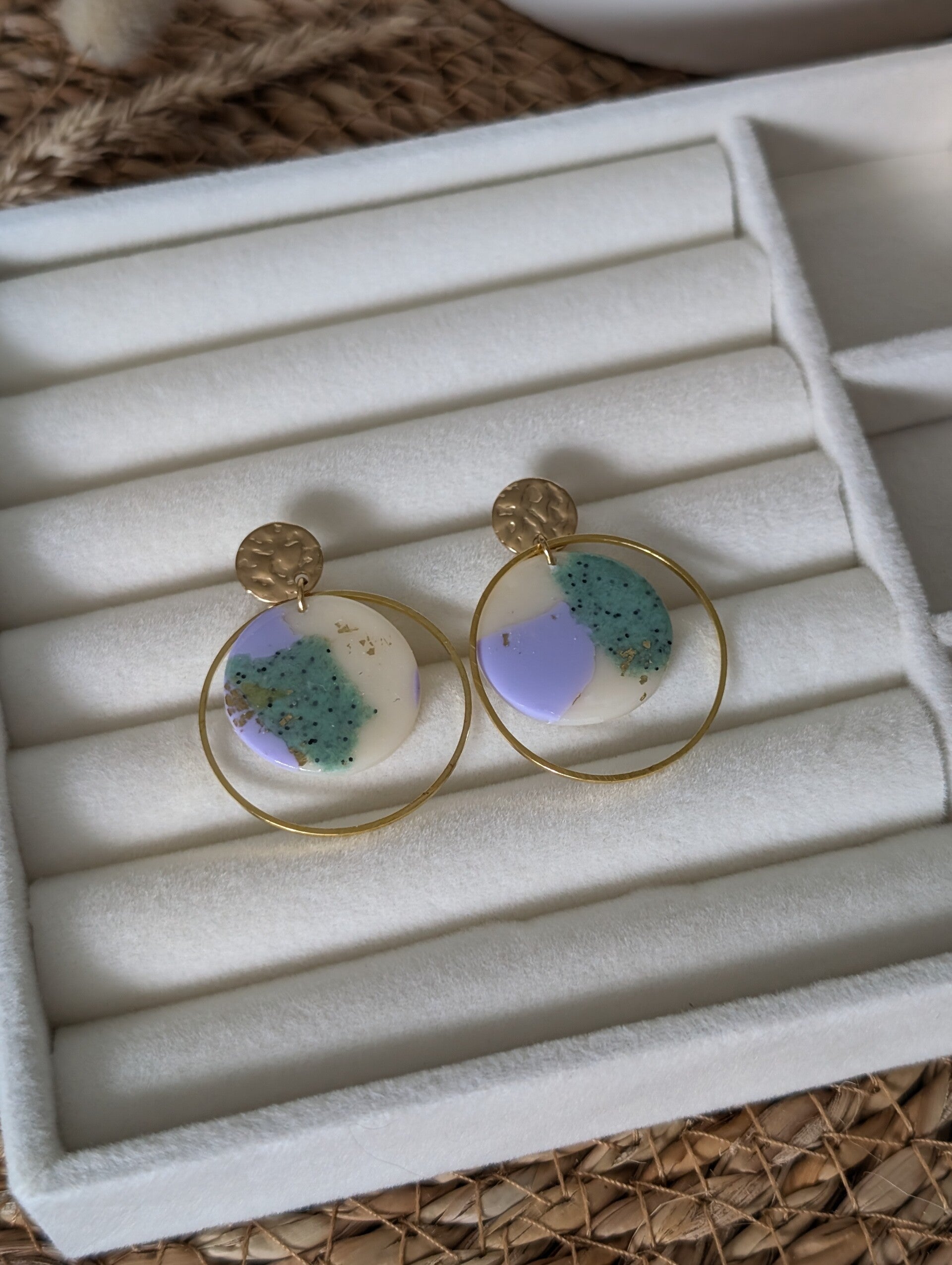 Ajoutez une touche d'élégance à votre tenue avec ces boucles d'oreilles en pâte polymère, réalisées à la main. Leur design unique et leur légèreté assurent un confort optimal toute la journée.